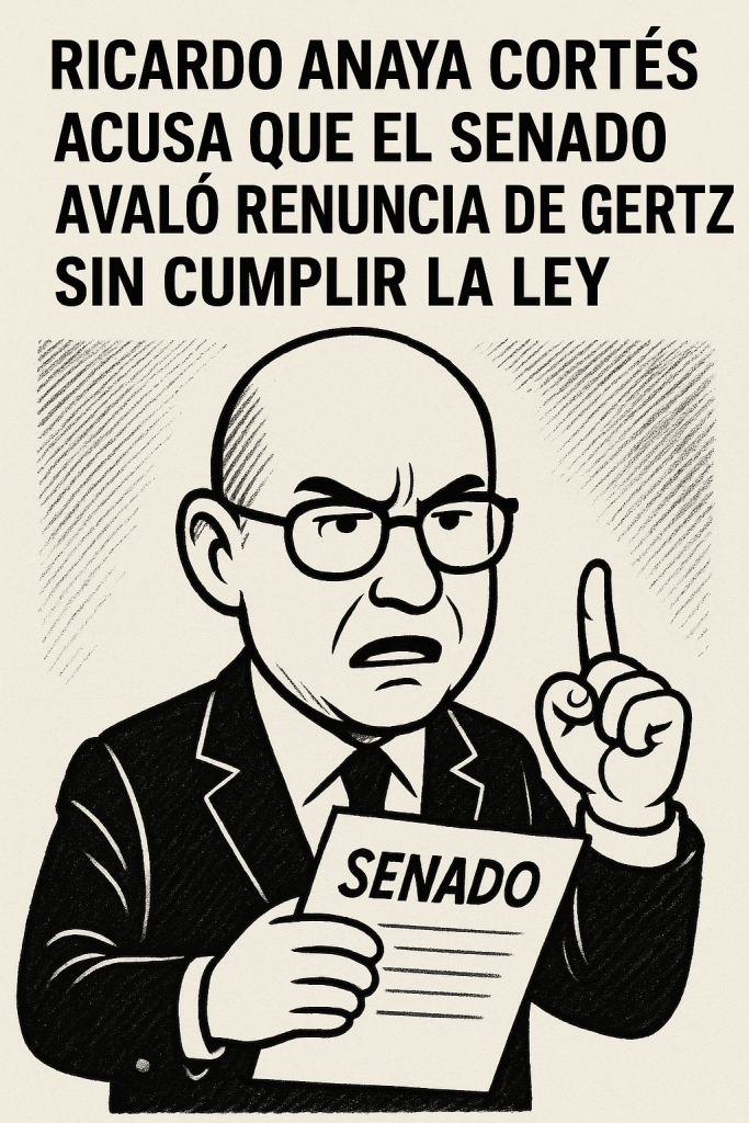 Ricardo Anaya Cortés acusa que el Senado avaló renuncia de Gertz sin cumplir la ley.