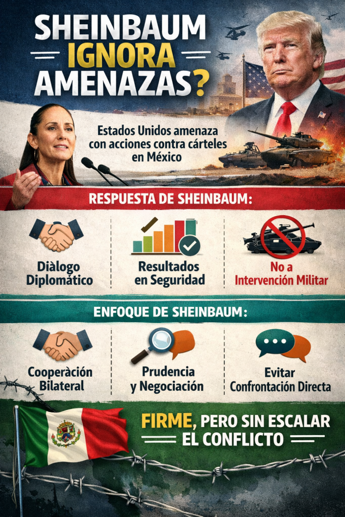 Que tal queridos amigos. Al parecer la señora que se dice presidente, no se toma muy en serio lo que está pasando en el mundo, ni tampoco las advertencias del desquiciado presidente de los Estados Unidos Donald Trump, digo desquiciado porque solamente le falta guerrear con el espacio, la luna, el mundo y por supuesto con México, que está en su agenda de agresiones, porque naturalmente que México le está dando motivos, para que sea prioritaria la intervención de los Estados Unidos en nuestro país y los motivos son muy sencillos por ejemplo no hay resultados reales, ni concretos de la lucha contra el narcotráfico al contrario ha crecido, me acabo de enterar que ya se formó en Yucatán el Cártel de la Costa, un cartel que puede ser devastador en todo lo que es el sureste de la república, han crecido exponencialmente los carteles en ´México, no es solamente el fentanilo, y además la señora Sheinbaum sigue insistiendo en robarse nuestro petróleo, para entregárselo a Cuba, una empresa que está en quiebra como Pemex, bueno no está en quiebra pero está totalmente endeudada, maniatada por las deudas, pero que sigue saliendo petróleo para dárselo a Cuba casi de regalo, cuando ya no recibe el petróleo de Venezuela y el señor Trump no quiere que se le mande petróleo a Cuba.
