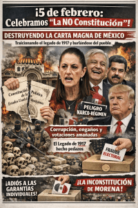 Entonces, en ese caso tendríamos que celebrar en vez de la institución, la no constitución, esa es la realidad, con tantas modificaciones e incumplimientos cómo vamos a celebrar la constitución de 1917, que no entienden que tuvieron que morir 15 millones de mexicanos para lograr esa Constitución, para darnos el derecho del voto, el cual no han respetado, y ha sido manipulado por una bola de gentes que tienen llena de caca la cabeza, para tener a su disposición la constitución.