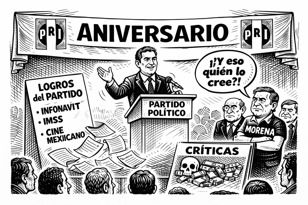 En un evento de conmemoración, en un evento privado, seleccionamos algunos mensajes de Alejandro Moreno, lo que nos habla de la evolución que ha tenido el Partido Revolucionario Institucional y hoy prácticamente planteándose como de los primeros, junto con el PAN, partidos de la oposición, pero vean ustedes el planteamiento de lo que hizo Alejandro Moreno, en el Aniversario del Revolucionario Institucional, y aprovecho para compartirles estos fragmentos, vean ustedes esto: