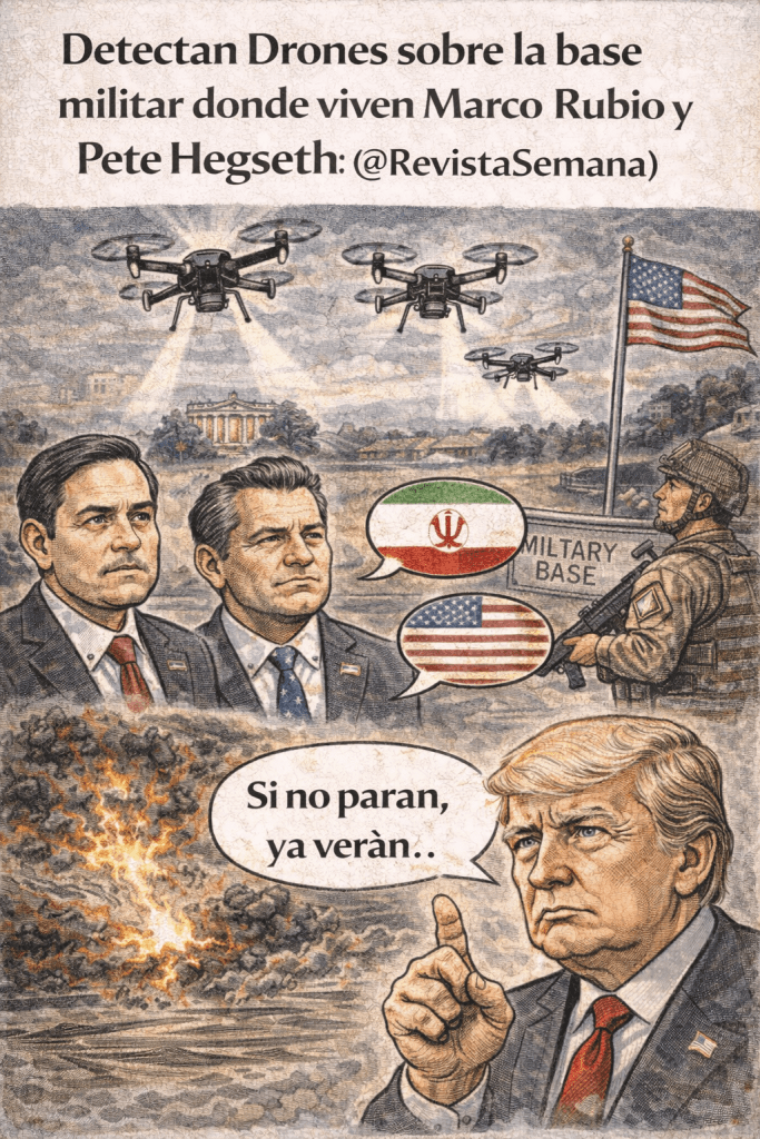 Marco Rubio estaría en peligro por drones que sobrevolaron la base militar donde vive en Washington. En esa base militar viven el Secretario de Estado, Marco Rubio, pero además el Secretario de Defensa Pete Hegseth. Al parecer hace unos 10 días se detectaron drones no identificados y ya se activaron los protocolos de seguridad ante un posible escenario de amenaza extranjera. Y aquí es donde la situación se vuelve más delicada, no se trata solo de drones, se trata de quién podría estar detrás.
