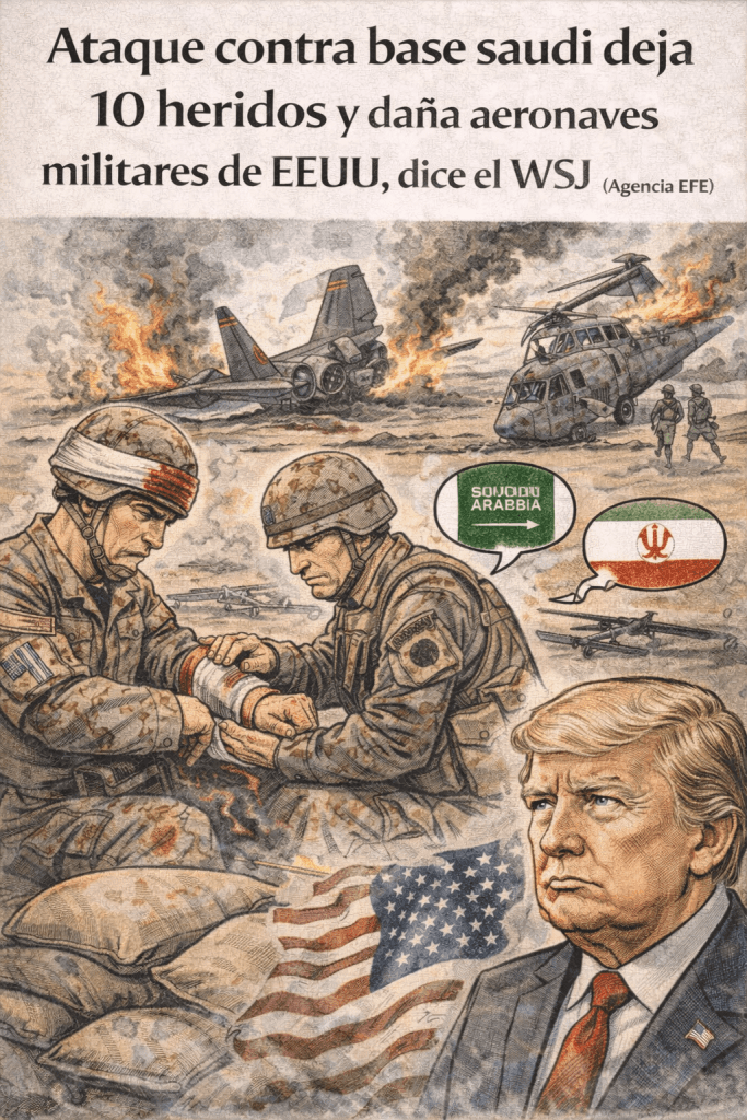 Al menos diez militares estadounidenses resultaron heridos este viernes tras un ataque contra una base aérea en Arabia Saudí que provocó daños en aeronaves militares de Estados Unidos, en un nuevo episodio de la escalada del conflicto en Oriente Medio, de acuerdo con el Wall Street Journal.