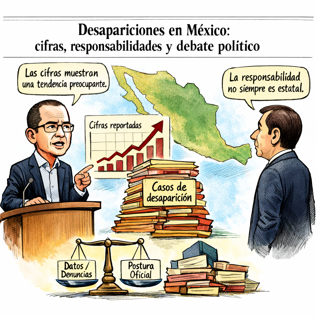 Miren, y otro problema todavía mayor que la impunidad es la coparticipación de las desapariciones forzadas entre la delincuencia organizada, que por supuesto hay choques entre cárteles, hay secuestros selectivos y después ejecuciones de unos cárteles con respecto de otros, eso lo… incluso el hecho de que haya cárteles que, por ejemplo, busquen el reclutamiento de jóvenes para después llevarlos como halcones o como ejecutores, como como sicarios y que algunos de ellos rechazan la oferta y pues simplemente son eliminados. Ahí está el rancho Izaguirre como un ejemplo, pero por otra parte, y esto a ver con qué cara Claudia Sheinbaum con su nuevo secretario o secretarie de Relaciones Exteriores ahora puede sostener una ilegalidad que se presenta, no solamente desde el punto de vista de la criminalidad que propicia estas desapariciones, sino del propio gobierno que selectivamente elimina a personas que son agresivas a sus regímenes en diferentes instancias, ya sea la instancia federal o las instancias estatales o municipales.