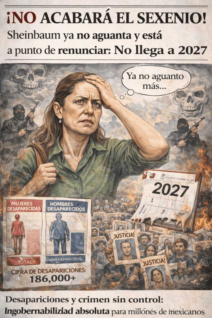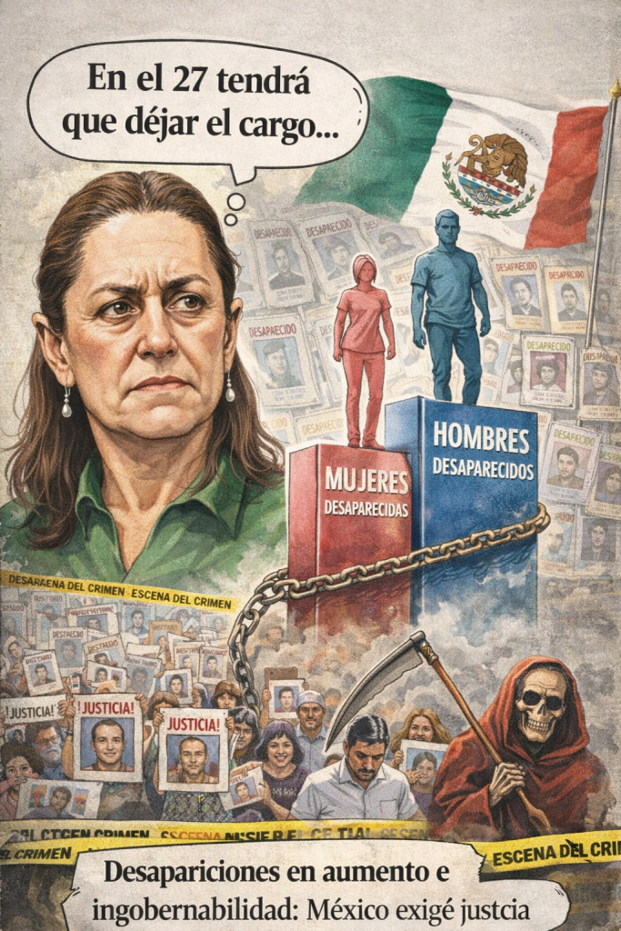 El enojo de México ha sido acumulativo porque lleva, miren, es también importante decir que la cifra de desapariciones, si bien es cierto en gobiernos anteriores como el de Peña Nieto, como el de Calderón, como el de, el propio Vicente Fox, que fue uno de los menores, en fin, vinieron desapariciones forzadas, por supuesto, el proceso empezó a incrementarse de una manera brutal cuando entró López Obrador y ojo, eh, al principio ese incremental se dio en mujeres desaparecidas, mujeres que desaparecieron, y después vino otra gráfica que superó por hombres que han venido desapareciendo sistemáticamente en los últimos tiempos, pero el problema que queda ahí es creciente porque de aquí en adelante vamos a ver cifras mayores de la señora Claudia Sheinbaum, que insisto, esta mujer en el 27 va a dejar, va a tener que dejar el gobierno porque no puede gobernar a este país, porque este país ha llegado a situaciones ingobernables.