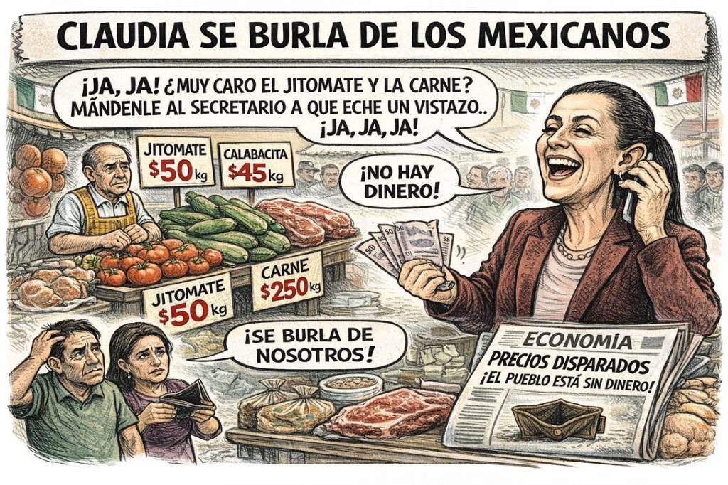 Dice que el jitomate, la carne, la calabacita está muy cara, riéndose, en serio, usted está riéndose, usted que lleva responsabilidad en esto, usted se ríe, mientras hay millones de mexicanos afuera de su palacio, afuera de esa esfera en la que usted y los políticos viven, que no les alcanza para un bistec, ¿de eso se ríe señora presidente?