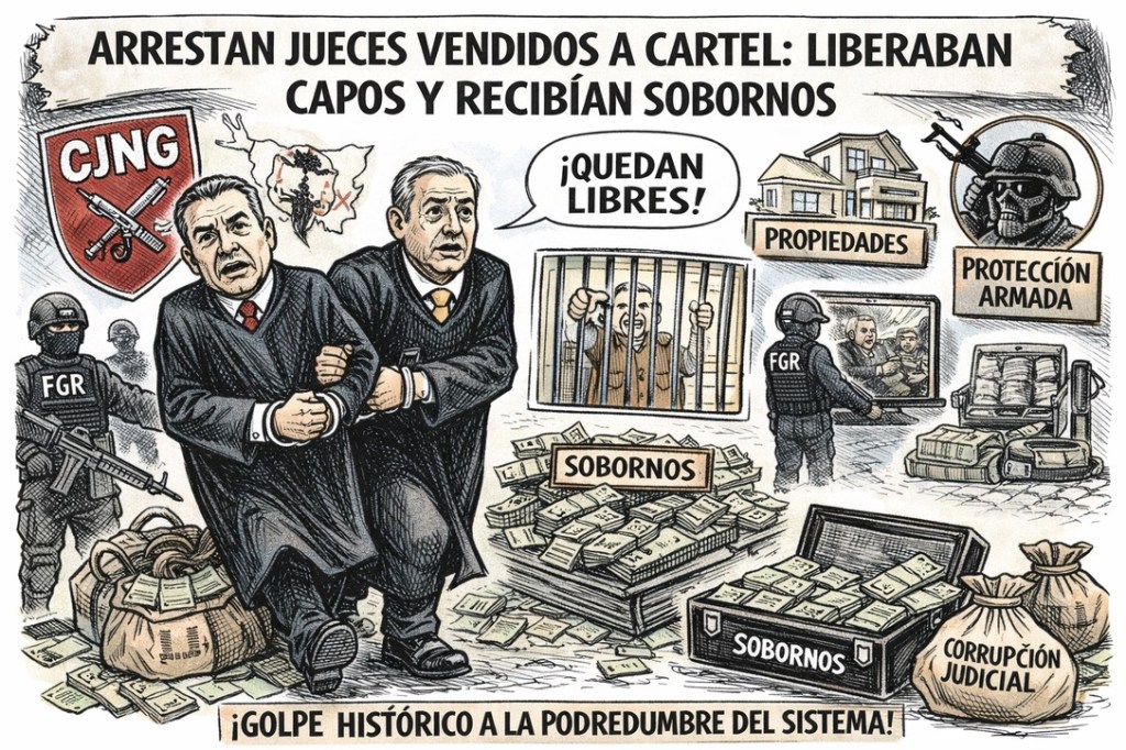 ¡Golpe histórico contra la corrupción judicial! La Fiscalía General de la República (FGR) y la Unidad de Inteligencia Financiera detuvieron a varios jueces y magistrados acusados de estar vendidos al narco. Los funcionarios liberaban a capos y sicarios a cambio de sobornos millonarios, manipulaban procesos y protegían a miembros del CJNG, Sinaloa y otros cárteles.