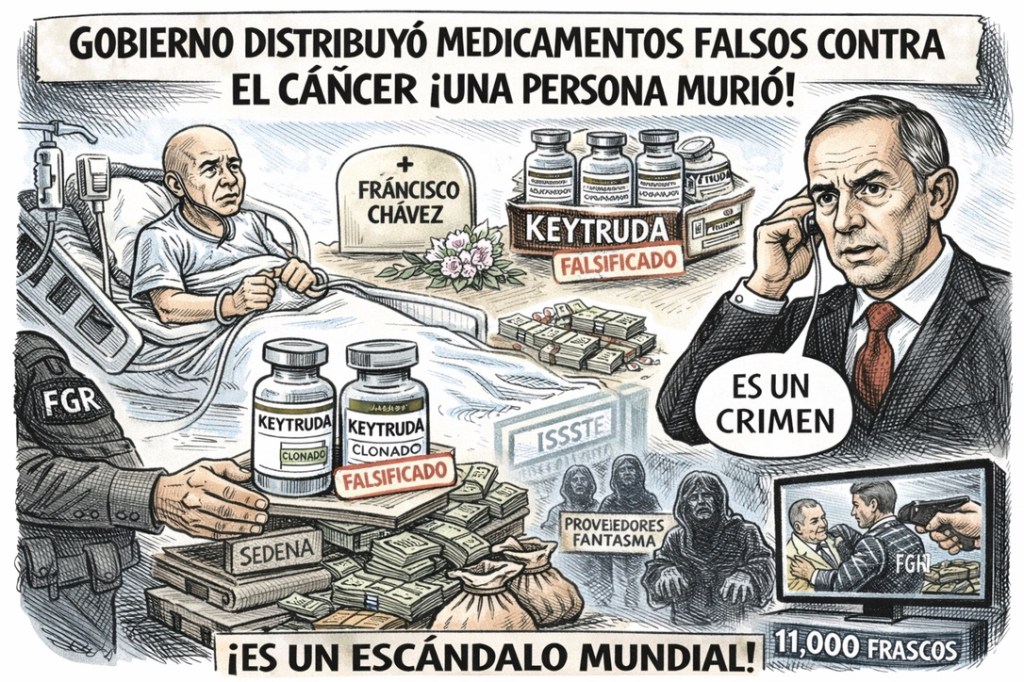 La investigación internacional ‘Cancer Calculus’, realizada en alianza con el Consorcio Internacional de Periodismo de Investigación (ICIJ), encontró más de 11,000 frascos de lotes con problemas de falsificación en farmacias de institutos de salud pública mexicanos el 90% en el ISSSTE. México fue el ÚNICO país del mundo con casos repetidos de falsificación de medicamentos oncológicos en hospitales públicos. Violeta Santiago documentó casos en SEDENA, el Hospital Naval, el ISSSTE en Mérida, Yucatán, y reveló que COFEPRIS apenas sancionó con 150 mil pesos a la empresa Top Pharma. El paciente Francisco Chávez recibió Keytruda falsificado en dos ocasiones y sufrió reacciones adversas que persisten hasta hoy. Merck Sharp & Dohm confirmó más de 20 denuncias penales por falsificación. La farmacéutica vende cada frasco a 52 mil pesos al gobierno, pero instituciones compraron a particulares y distribuidores sin infraestructura, con domicilios fiscales en viviendas de Tlalpan.